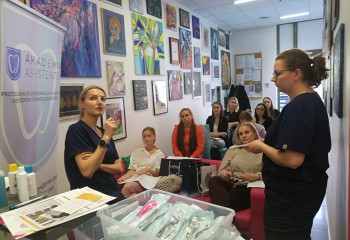 W dniu 29 maja 2022 r. słuchaczki naszej szkoły kształcące się w zawodzie higienistka stomatologiczna realizowały kurs pod nazwą "Rola higienistki stomatologicznej przy pacjencie implantoprotetcznym". Kurs przeprowadzony został przez "Akademię Asystentek" z Krakowa i miał na celu wzbogacenie umiejętności naszych słuchaczek pod względem obowiązków higienistki stomatlogicznej przy zabiegach stomatologicznych dotyczących implanoprotetyki. Kurs realizowany był w ramach finansowanego ze środków UE projektu "Modernizacja kształcenia zawodowego w Małopolsce II"