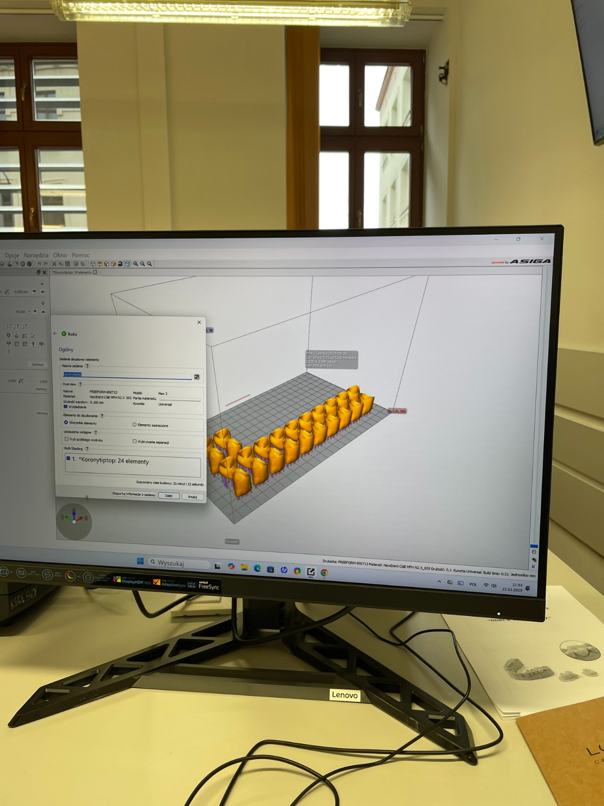 W dniach 20-22 listopada 2025 roku w dwóch podgrupach zorganizowano dla 20 Słuchaczy klasy drugiej w zawodzie technik dentystyczny, kurs "Druk 3D od A do Z". W trakcie szkolenia prowadzonego przez nauczycieli szkoły wykorzystano kompletny sprzęt do drukowania prac protetycznych (korony, mosty, modele) w technologii 3D, który znajduje się na wyposażeniu szkoły. W ramach szkolenia Słuchacze poznali teoretyczne i praktyczne aspekty związane z drukiem 3D. Kurs realizowany był w ramach finansowanego ze środków UE projektu "Zawodowa Małopolska".
